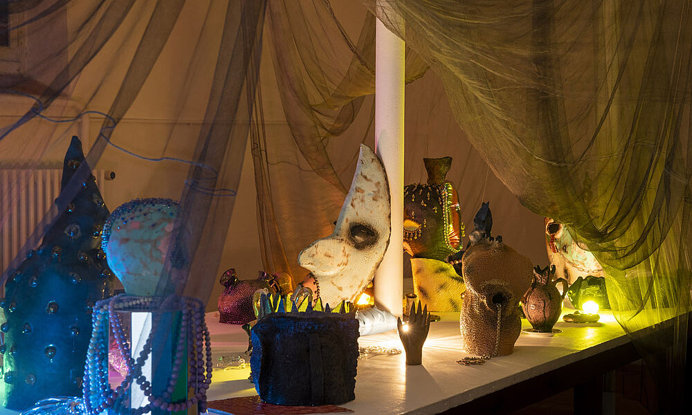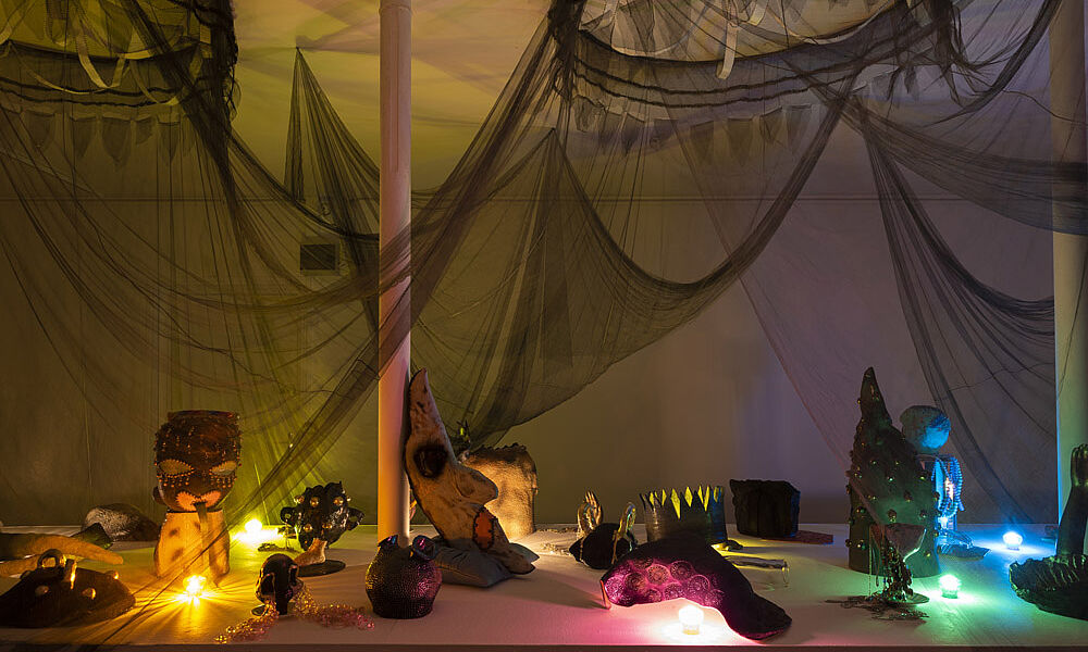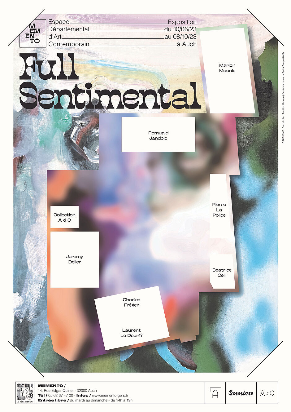 La nouvelle exposition FULL SENTIMENTAL replace les fondements de nos pratiques populaires et contemporaines au cœur d’une envie commune : faire de MEMENTO une « bulle sentimentale », une cure protectrice et régénératrice d’émotions. Là où Intelligence Émotionnelle prendrait le pas sur les pensées artificielles de nos mondes technologiques. Dans la tradition des mascarades et autres « bascules festives » les artistes invités, explorent ici le dérèglement et le « lâcher prise ». Quand la musique soigne les corps et les âmes, quand les masques et les confettis célèbrent l’humain et le non-humain, quand la création perce la surface de nos pensées artificielles. La culture populaire y côtoie soudain le féérique et le rend tangible. Les figures rituelles ou festives imaginées par l’humanité, incarnées lors de festivals, remettent en ordre de marche les connaissances du passé. Ici, la création contemporaine réanime les sa voir -faire et les sa voir -être qui ont bâti nos sociétés contemporaines. Car il s’agit bien de réveiller nos célébrations perdues en honorant les contre-cultures, le folklore et surtout les individus dans toutes leurs singularités et diversités. Les artistes puisent dans l’ADN de Lieu pour nous convier à des moments d’évasions collectives. En déréglant nos zones de confort, ils replacent l’œuvre au-delà du simple « voir » pour perturber nos sens et les remettre en éveil.