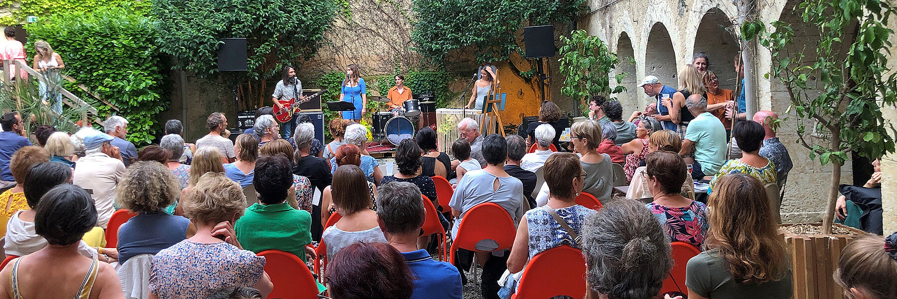 Durant l’été, MEMENTO se transforme en chambre d’échos de l’exposition UNION LIBRE en conviant tous les arts vivants. Du concert intime à la danse collective les Mercredis de MEMENTO font du cloître une bulle artistique dédiées aux émotions : Ecouter, ressentir, déguster, prendre le temps de vivre des instants magiques et suspendus.